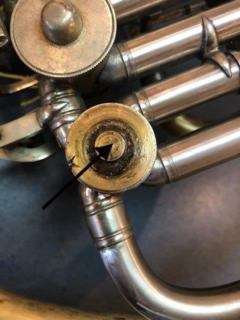 We see a lot of horns with gummy valves. It seems that student horn players misunderstand the process of oiling rotary valves. Do not pull out a valve slide and drip valve oil into the slide. The oil will mix with the slide grease and take the resulting gummy mess into your valves. A rotary valve has only two small contact areas that require oil—