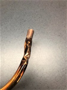 Someone twisted the Leadpipe of a tuba when trying to get the mouthpiece out. This is what it looks like before and after we got it.